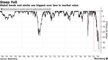 On the global stage, losses in total value were greater than ever before. Both stocks and bonds had an extremely weak year.