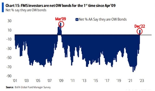 Investors are overweight bonds for the first time since March 2009 (!). The interest rate must go down!