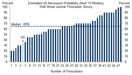The US economy is also holding up well and Goldman Sachs gives only a 35% probability that the US economy will enter recession within 12 months. That must be considered a positive!