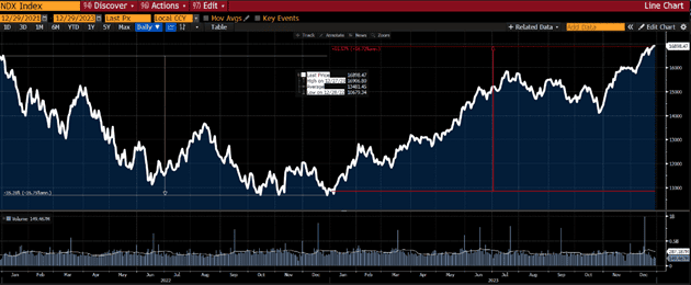 The starting position, a year ago, was inflation which was around the highest levels in several decades. Interest rates skyrocketed and in Europe the energy crisis was a reality. In the US, the Nasdaq had just finished 2022 with -33% and investors were more or less wounded.