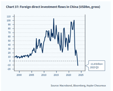 We must also mention China when summarising the past year. After a deranged Covid policy, the country finally opened up at the beginning of last year. Hopes were high for a kick start, but it turned out to be more of a melancholy deflation. Geopolitical tensions and all the logistical problems that arose as a result of the extreme Covid policy have brought China's growth to a standstill (by Chinese standards). Direct investment in the country has basically crashed and the political party is now whipped to speed up growth with various stimulus packages. Our simple assessment is that there is more upside than downside from here, but we take no active positioning based on that view. Within our portfolio LVMH is the company that benefits the most from increased economic activity in China.
