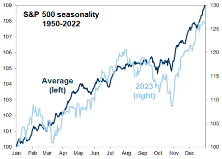 Investors are reasonably careless, and we are approaching the turn of the year. Global growth is well above average and interest rates are extremely low. Given how cruel the market has been to many investors this year, with sector rotations and a high concentration of companies driving performance, it almost feels obvious that the broad mass of investors will continue to reduce risk in their portfolios and then be short equities at year-end when the market rises. We'll see, but that's our main scenario right now.