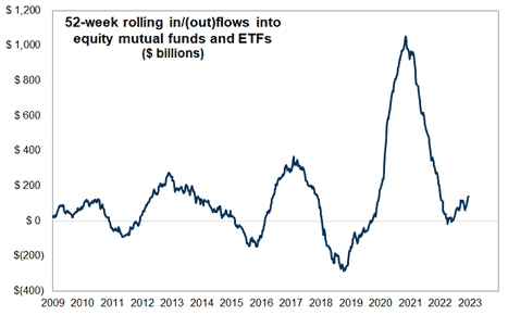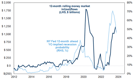 The cautious view of the economy has led to huge inflows into money market funds.