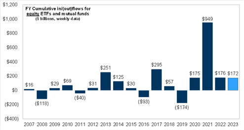 • The odds for a reversal of flow from money market funds to equity funds during the year are considered good.
