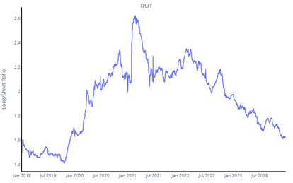 In addition to available capital as stated above, the image below is also interesting for understanding the starting position. It shows the exposure of Goldman Sachs clients to smaller companies, and it is clear that it is very low. Despite a strong end to the year, our assessment is that a large part of available capital is outside or has low exposure to this asset class. Historically, smaller companies have always had a strong development when inflation and interest rates fall.