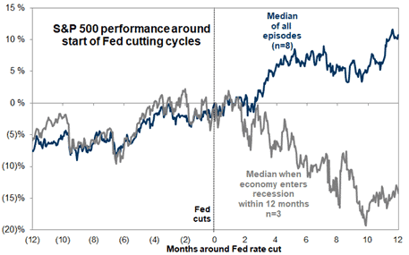 How has the S&P500 performed as the Fed begins to cut interest rates. It depends very much on whether there will be a recession or not. Our basic view remains positive, insofar as we do not expect any deeper recession in the economy.