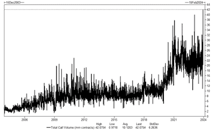 Further evidence of beta hunting came in the options market. Never before has the volume of call options been higher than on December 14th - 42 million contracts.