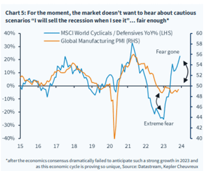 For about two years, the market has been waiting for an American recession, which still hasn't happened. The most anticipated recession ever? 44% expected a US recession a year ago. The corresponding estimate today is around 50%, but will likely (in our view) drop in the coming months. The US economy has once again surprised in an impressive way to say the least. Here and now, it can be stated that the market was once again absolutely right.