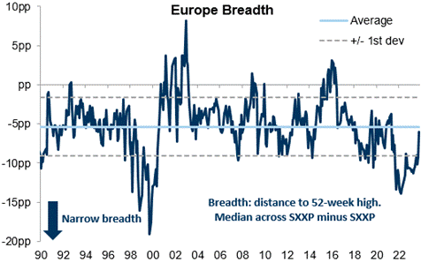 It is also a sign of health that the breadth of the market has increased, see image below. The picture looks the same for the American market where at the time of writing Magnificent 7 has been reduced to Magnificent 5, as Apple this year has fallen by 12% and Tesla by 33%.