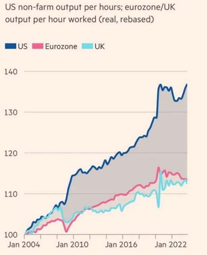 Maybe we should think about improving productivity in Europe instead of prioritising shorter working hours and higher pensions? Just a thought.