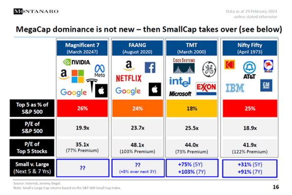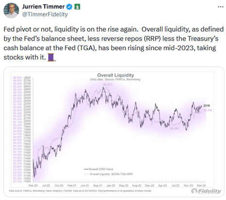The Fed delivered a perfect message to the market on March 20th when it revised up the growth for the US economy while also communicating that there will likely be three interest rate cuts this year. Although the last two inflation data published were higher than expected, the Fed said that things are moving in the right direction. They also see a labor market that is normalising and their comments about the second half of the year were clearly dovish. Our simple view is that we believe in a first interest rate cut in June, otherwise it will be too close to the election in early November as one want to avoid criticism from the Republicans that the Fed is supporting the incumbent President, Joe Biden. The investors and economists who for two years stared blindly at the inverted yield curve and stubbornly claimed that an American recession was on the way, seem to continue to lose both relative and absolute performance. If one is to say something serious about the picture below, the famous Fed put is again in play but, this time, to a lesser extent in the stock market but significantly more in the US economy as a whole. Definitely positive.