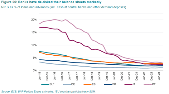European banks, which have been more or less completely knocked out since the GFC in 2008, have since a year ago awoken with profits not seen for more than 17-18 years. The ECB is currently feeding the banks heavily where current interest rates give very strong net interest income for the banks (our own Commerzbank is a perfect example). For some of the banks' customers, it is tough, but for the economy as a whole, it is very positive that banks have finally recovered.