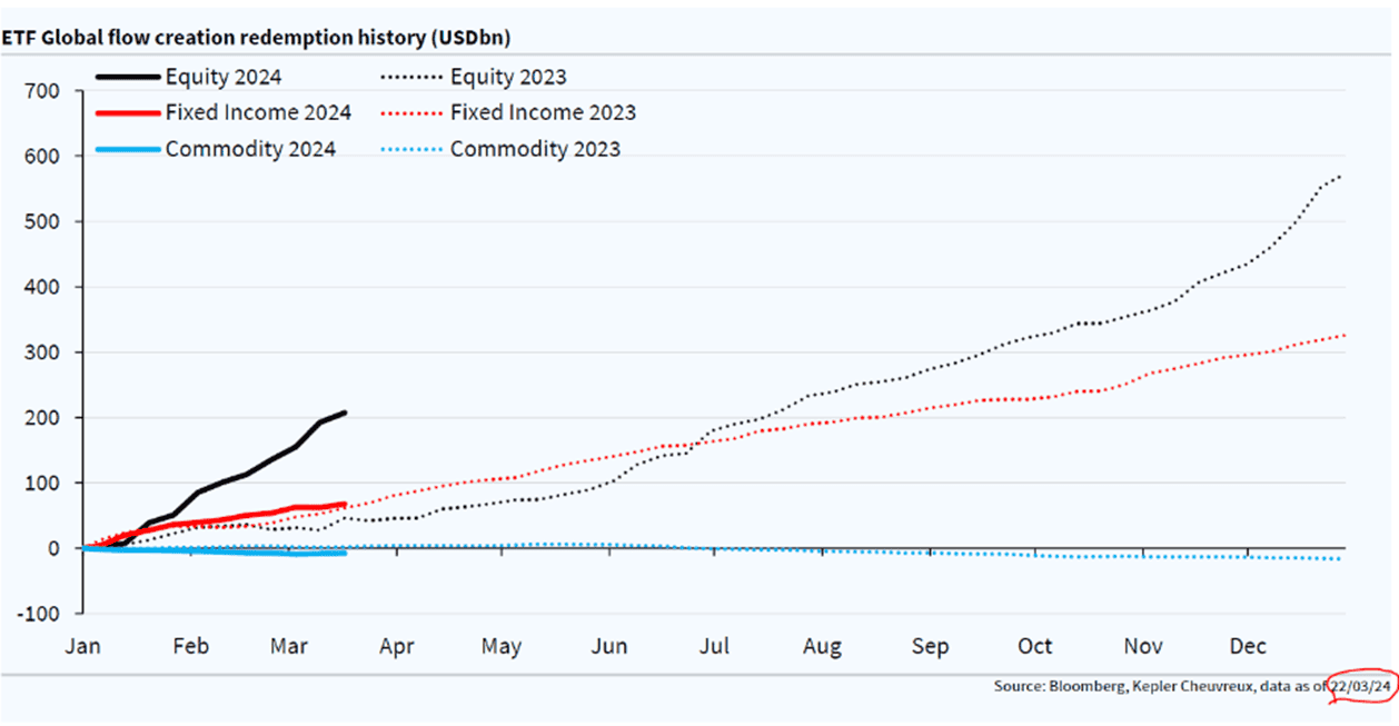 But it is equity funds that account for most of the inflows so far this year (compared to 2023).
