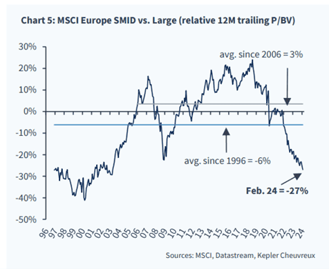 Below is the return for the first quarter of 2024. The performance for European and American small- and mid-caps during the same time period was 8.2% and 4.0%, so slightly lower than for the large broad indices.