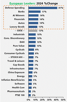 Best sector in Europe so far this year is the defence industry followed by low valued banks. The second worst sector in the first quarter of the year is real estate (which, however, had a very strong finish in 2023).